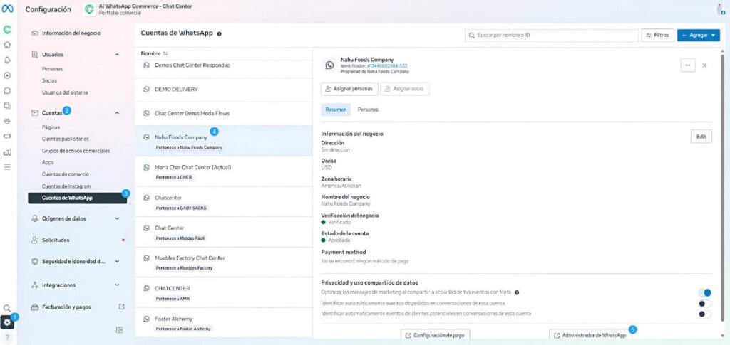 Este paso es crucial para habilitar las funcionalidades de compra directa por chat:
