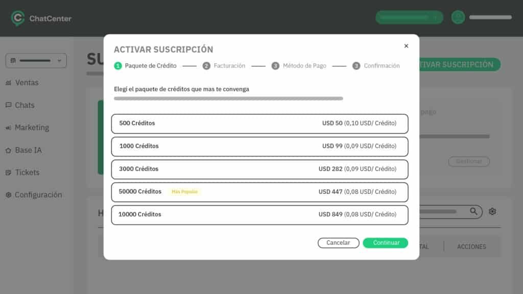 1. Elegir el paquete que mejor se alinee a los consumos mensuales de su empresa. (Este paquete de créditos tiene vigencia de 30 dias corridos y se renueva automáticamente).