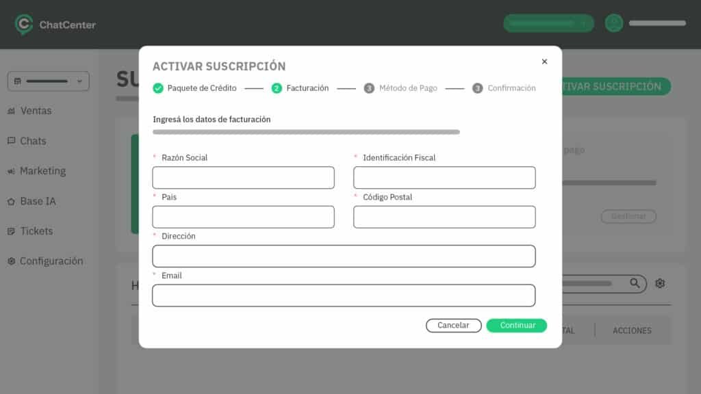 El Paso Fundamental para el Comercio Conversacional (API) Este proceso integra tu cuenta de Meta con ChatCenter, lo que te permite acceder al WhatsApp Business API. Es el paso fundamental...