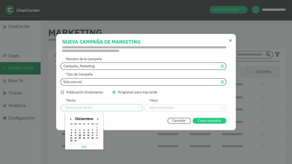 - Una vez completo, ACTIVAR LA NUEVA CAMPAÑA