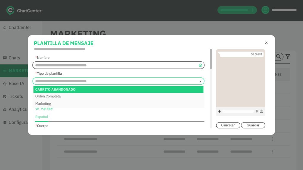 2. Crea una Nueva Plantilla de Carrito Abandonado en Chat Center