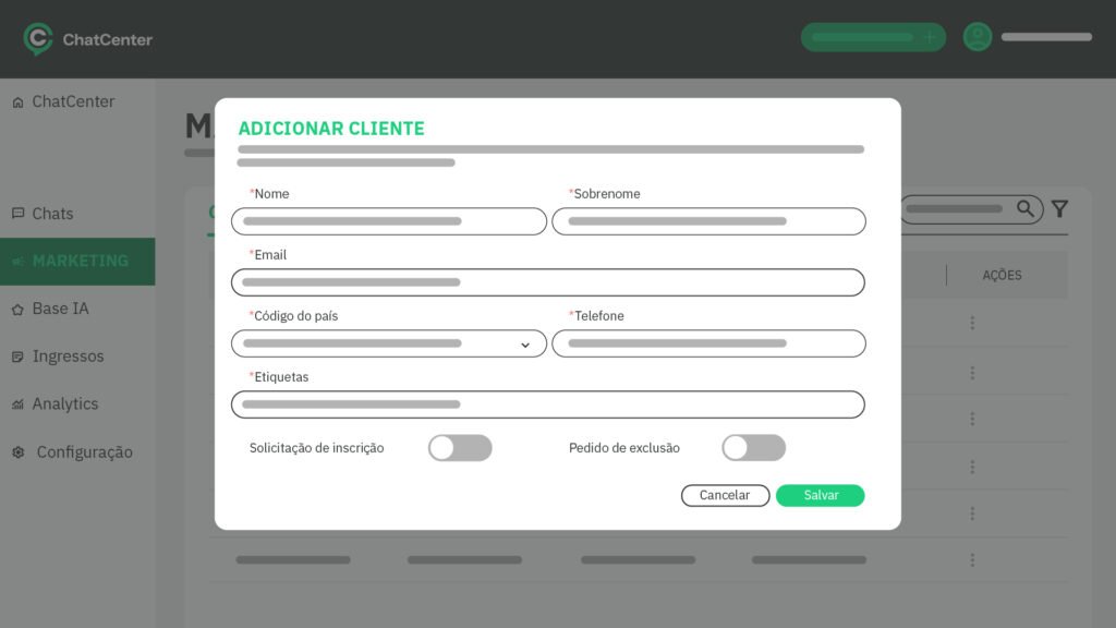| solicitação de exclusço | botão para impedir que o contato receba mensagems de marketing da plataforma. |