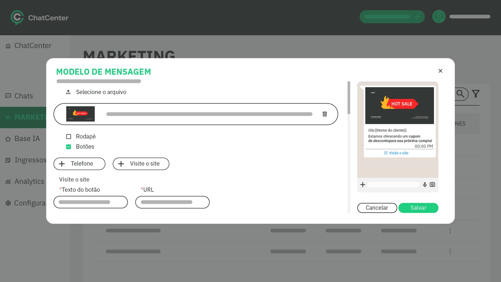 para configurar sua campanha: vocé poderá verificar o número de mensagems enviadas e, ao clicar nos trés pontos no menu de ações, visualizar os detalhes